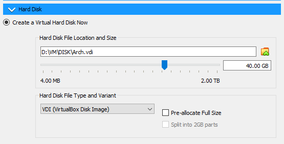 With the above, the Arch wiki recommends first to verify the signature of the ISO. After this optional step (or if it was omitted), prepare an installation medium, e.g. use Rufus or Win32diskimager to create a bootable USB with the Arch ISO. I will use VirtualBox for most of the installation and configuration, except when showing WiFi configuration by using a laptop. 1.3 Pre-InstallationThis is the setup I will be using. I'll explain each setting so you can mirror my VM settings.