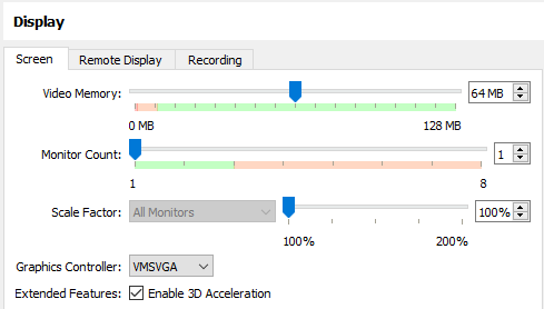 Video Memory: 64 MB will suffice for our desktop environment.